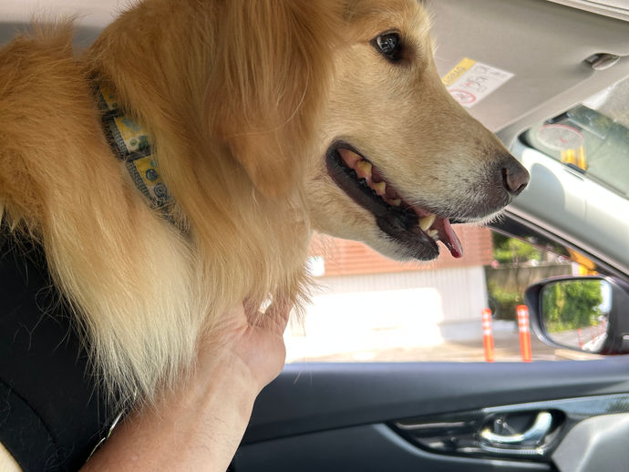 今日は、月一の井の頭公園の散歩です。 途中の車の中では、こんな感じです。 窓から外を眺めていますが、井の頭公園が近づくとワクワクするのか、 わんわん吠えだします。