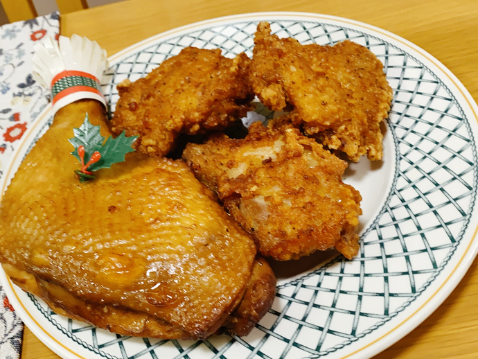 息子が独立し、娘は仕事の関係で帰ってこれず。。。 寂しいクリスマスです。 鶏肉と、今回はトップスのチョコレートケーキで。