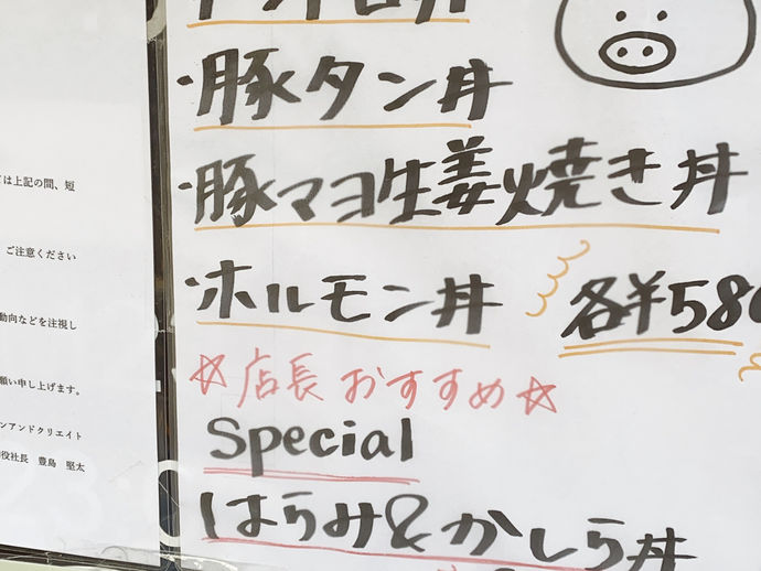 最近はまっているこの店。 『今日、豚の気分なんです。』で、はらみ丼を購入。 ご飯も暖かくて、ボリューム満点。美味しかった。 580円。