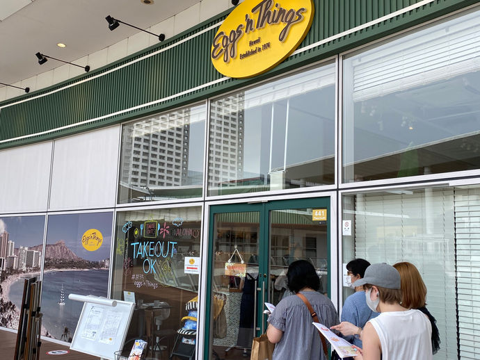 今日は、久しぶりにエッグスンシングスに行ってきました。 こんな時期ですが、ソーシャルディスタンスをとって並ぶこと、 30分で入店。 エビカレー、ポテト、マカデミア・バナナ・チョコのパンケーキ を食べました。 美味しかったー。 皿が温かく、時間が経つと、ホイップが傾いてきます。
